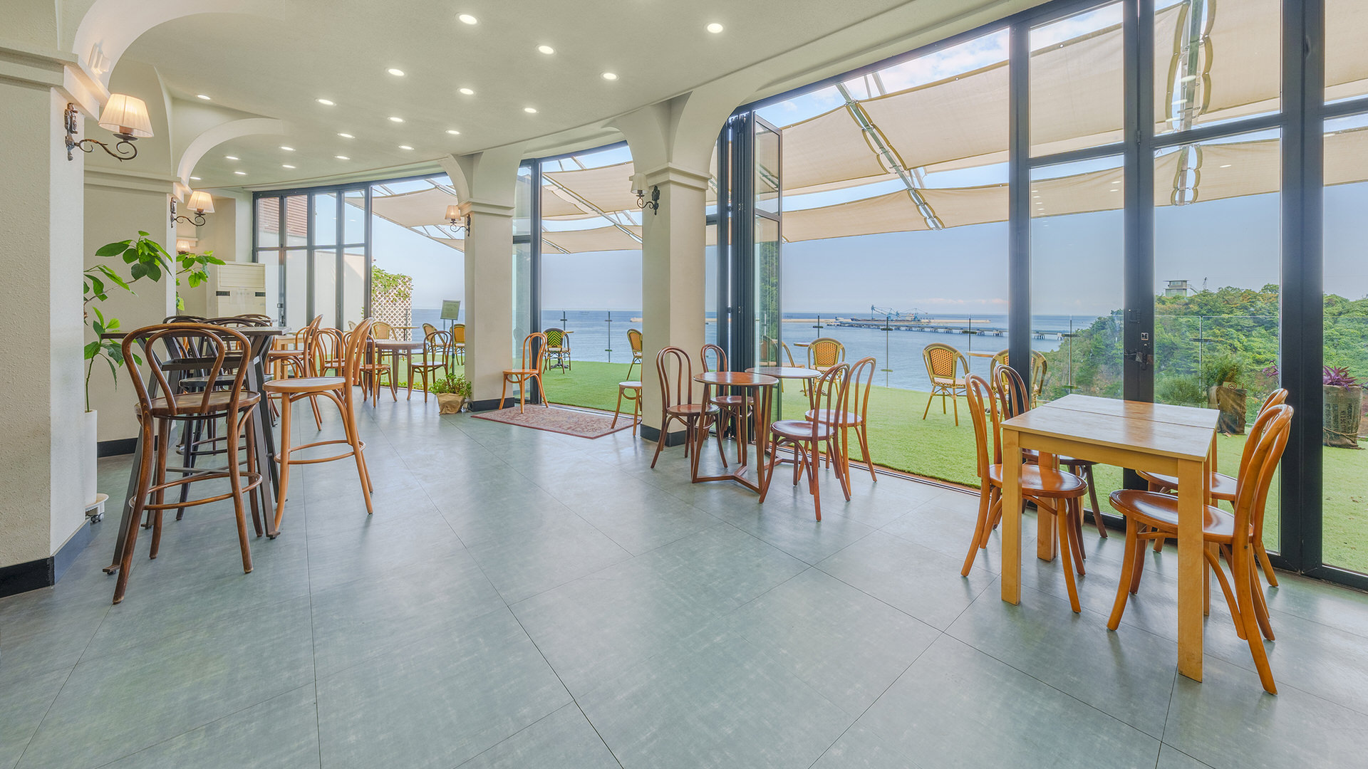 푸른 바다를 바라보며 맛있는 브런치와 커피를 즐겨보세요.